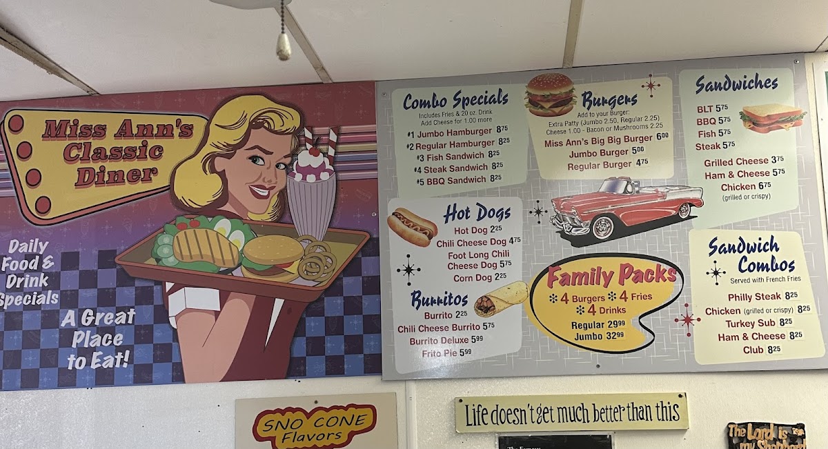 Miss Ann's Classic Diner Menu